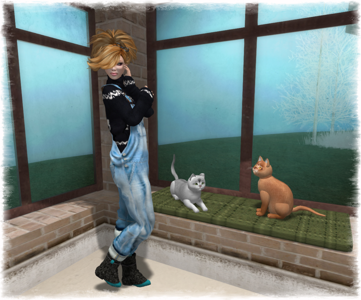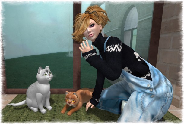 …. and just a few seconds later, he’s on my lap, demanding to be cuddled, and Abbi – of course! wants to be cuddled too… and that’s that. You just can’t argue with a cat, and with two of them, it’s ….. impossible! 🙂