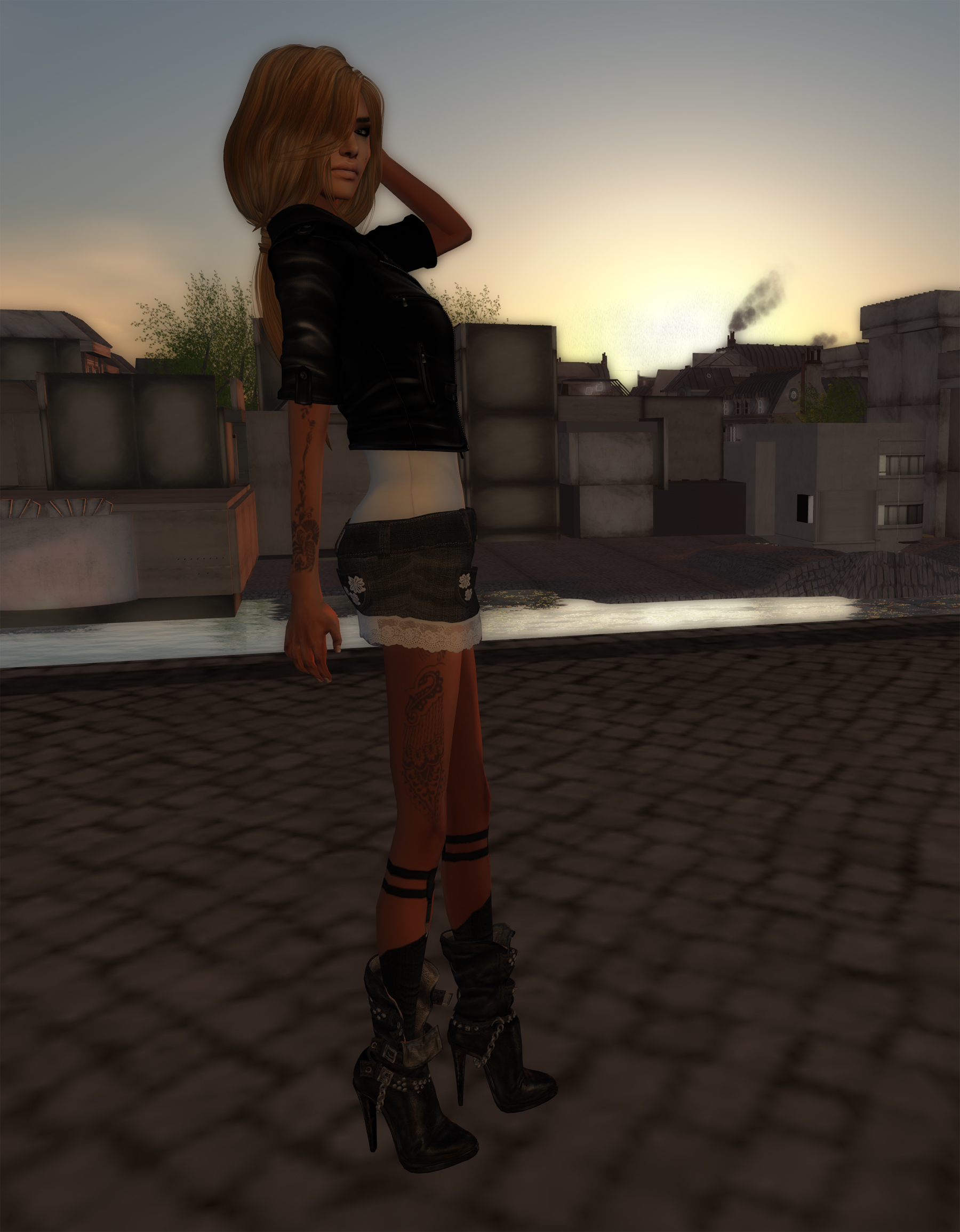 I still love my old biker boots… wish they would be reloaded once again – in mesh (hint hint) π Together with my new biker jacket and the jeans mini, I feel sexy and comfortably dressed at the same time… which is always a big plus in my book!