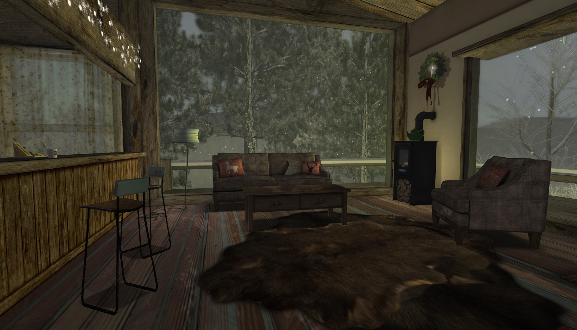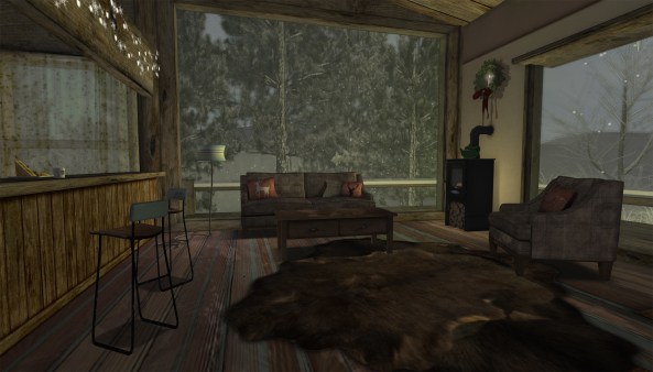 Okay, so I live on mainland, at a beautiful coast, and I love my land dearly… but, of course, there’s no landlord changing the ground-texture to snow for me! I decorated my little shop for winter, but somehow, that was not enough. Luckily I had prims to spare, so up went another Turnip’s skydome – there’s a free update available, don’t miss out on it if you own an older model of the dome! – and here it is, my winter hideout…. hope you enjoy!