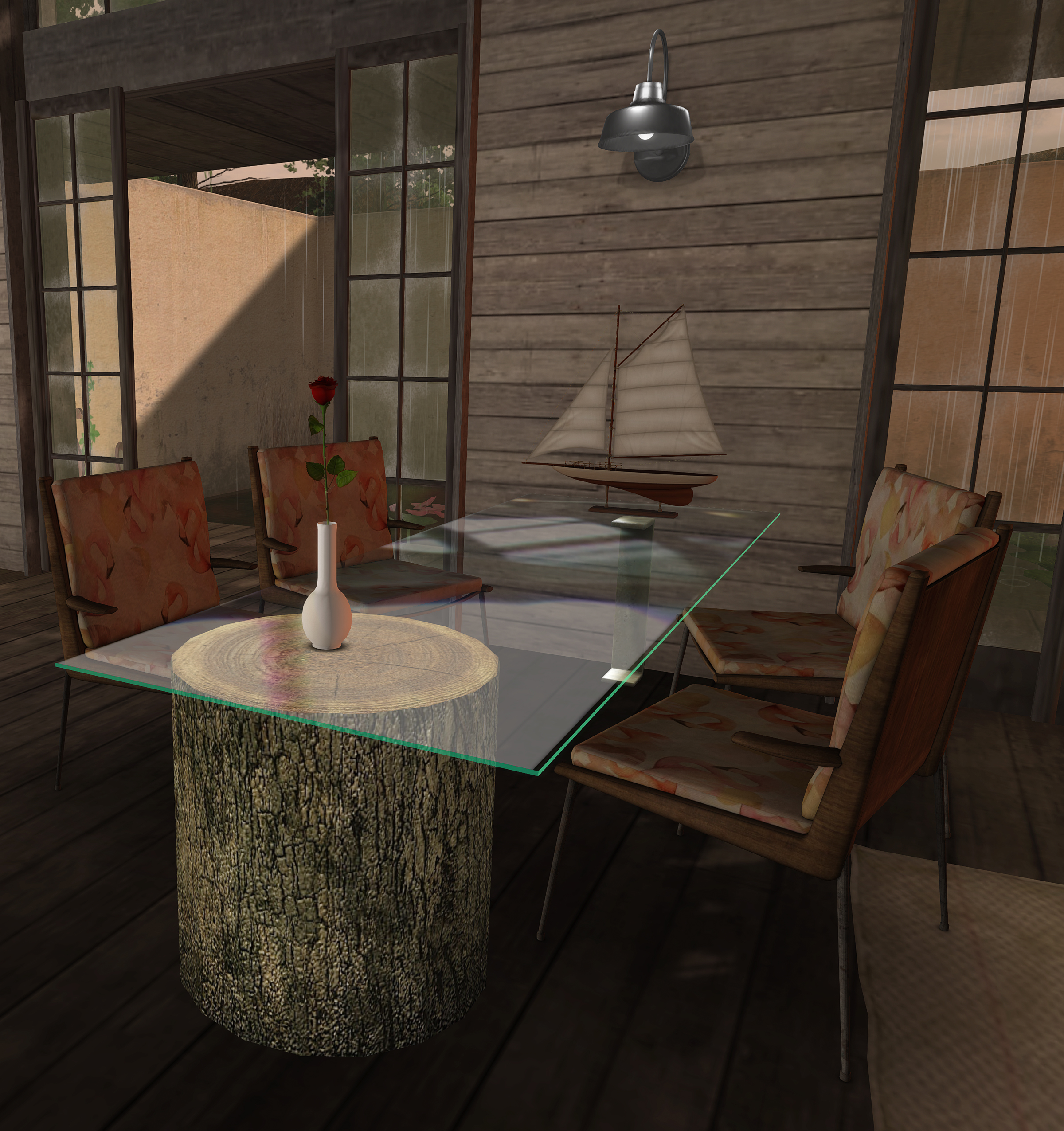 This is my lovely new home from +NODe+! I especially love the little walled veranda and pond – there’s a rain system coming with the house, it’s so peaceful! You should visit the SLOW sim, where all +NODe+ houses are on display, as well as a lot of small shops whose items are featured in this post, like { ililo } and Bitter Vanilla. { ililo } is rebranding as +ILO+, a lot of the older stuff is available at reduced prices and will vanish soon, so go grab it now! As always, I hope I have credited all items, if you find something I have forgotten to mention, leave a comment!