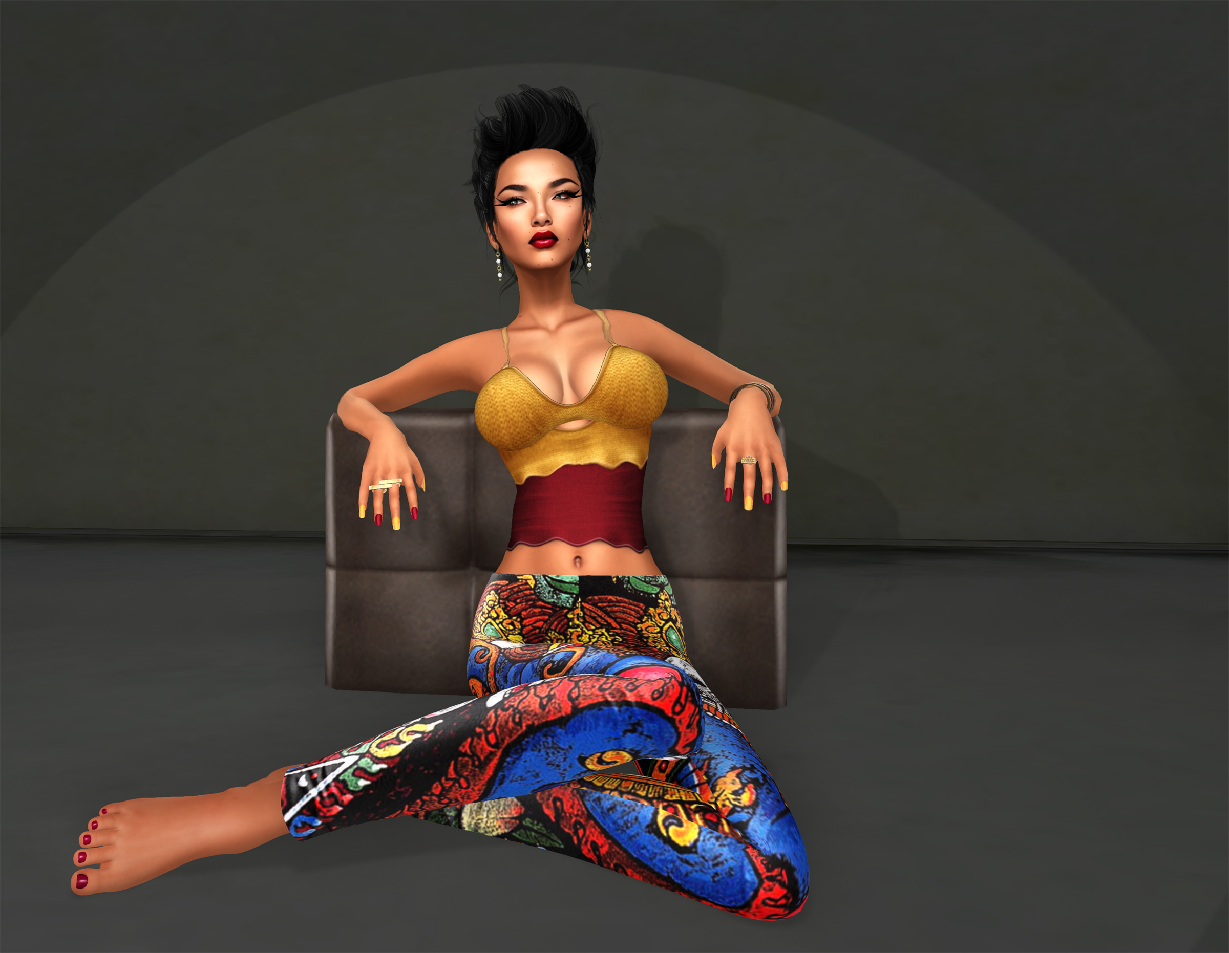 I’ve been waiting for this skin ever since Ava Grau first posted previews on her flickr – Anais is so beautiful!! Now I was able to get a preview at Skinfair (opening to everyone on March, 15th), I grabbed her up in the skintone “september”, with the matching lipstick package and Lola appliers. I have been a long-time fan of Glance skins – in the depth of my inventory there are still some Glance skins I bought in 2009/10, when I just had joined SL! I’m wearing a top by elymode, and Fanatik’s new printed mesh leggings – you don’t see it in this pic, but they sure make a sexy behind! 🙂 And did you know that with the Jamman mesh nails, you’re able to colour single nails to your hearts desire?