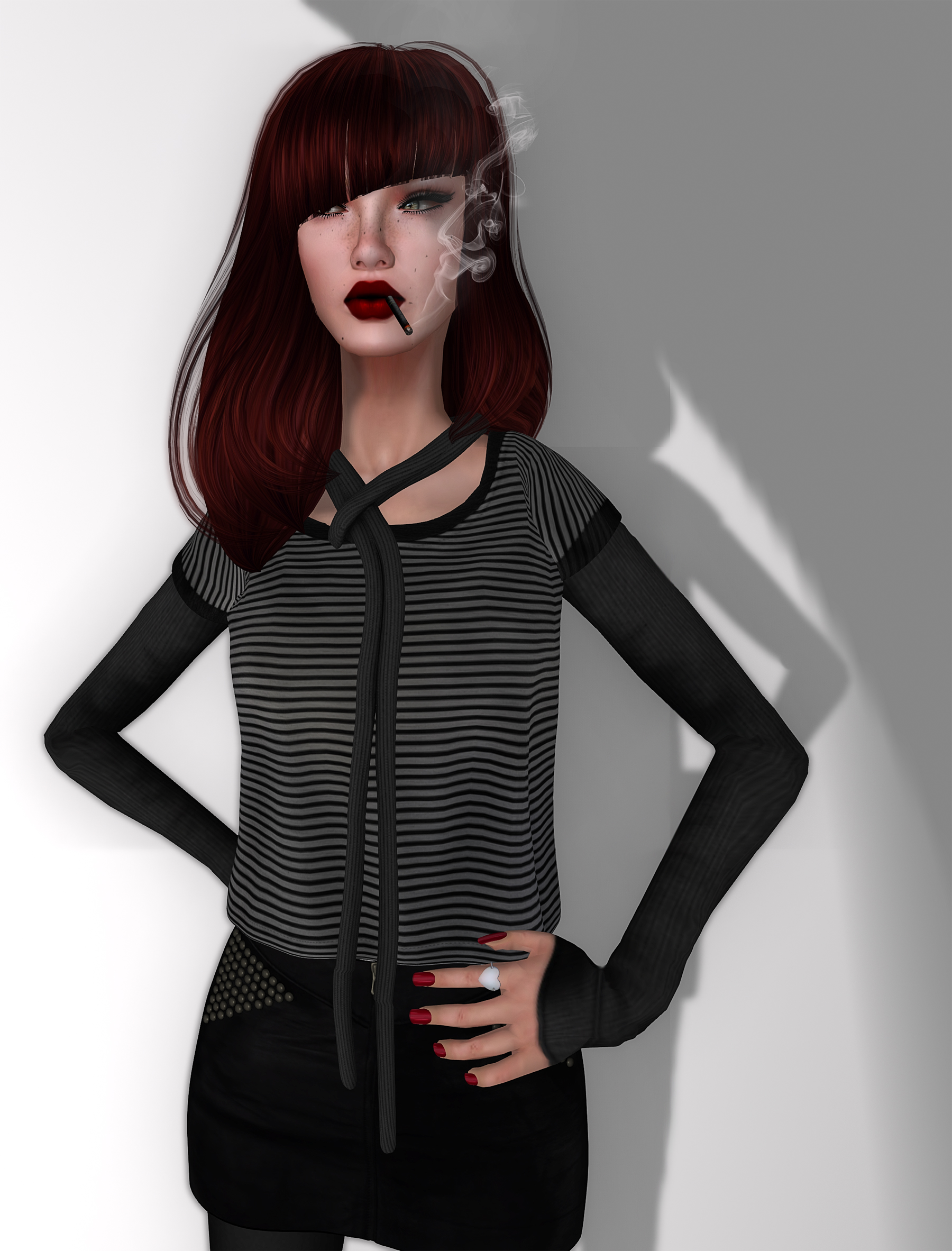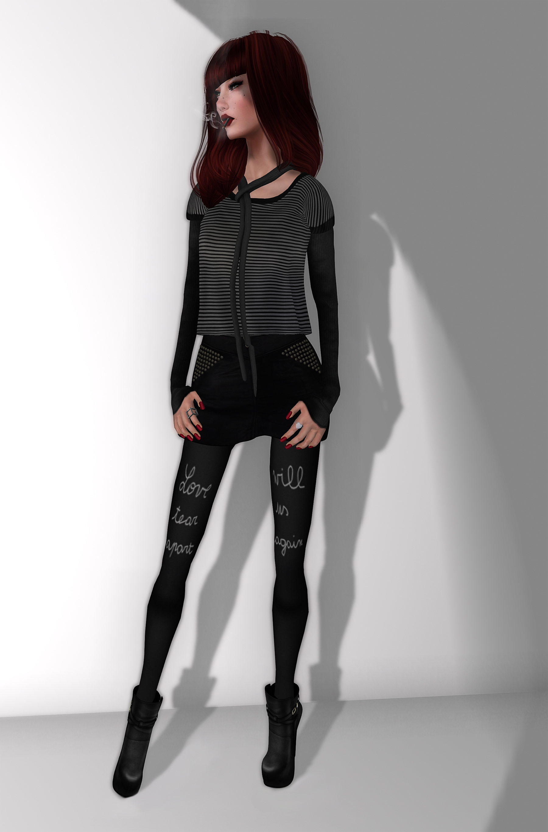 It’s a new month and a new round at FaMESHed! As always, there are so many great things to buy! I’m showing you a sexy hairstyle by Wasabi Pills called “Betty”, the super-cute shirt is from The Secret Store and comes in so many great colour options, it will be a staple in every wardrobe! The studded black skirt is by Cracked Mirror. Have fun shopping!
