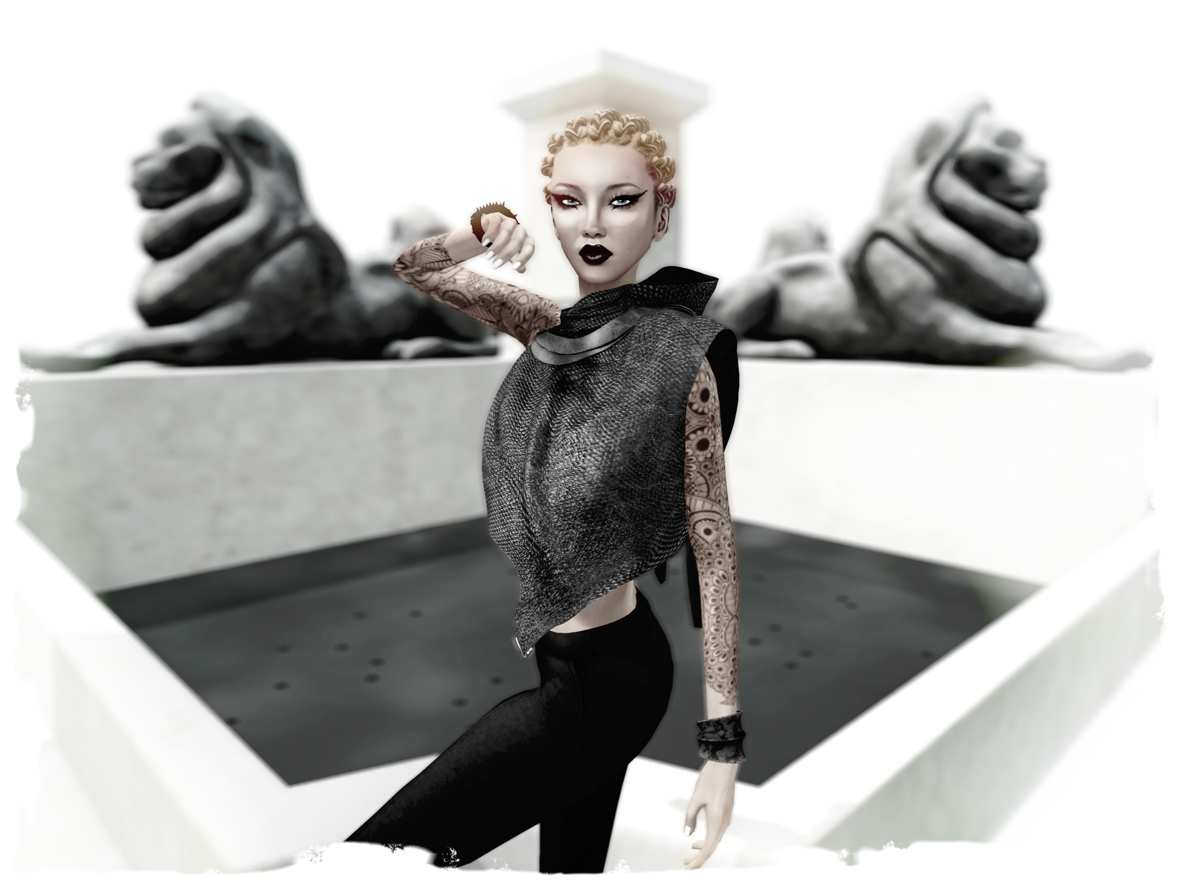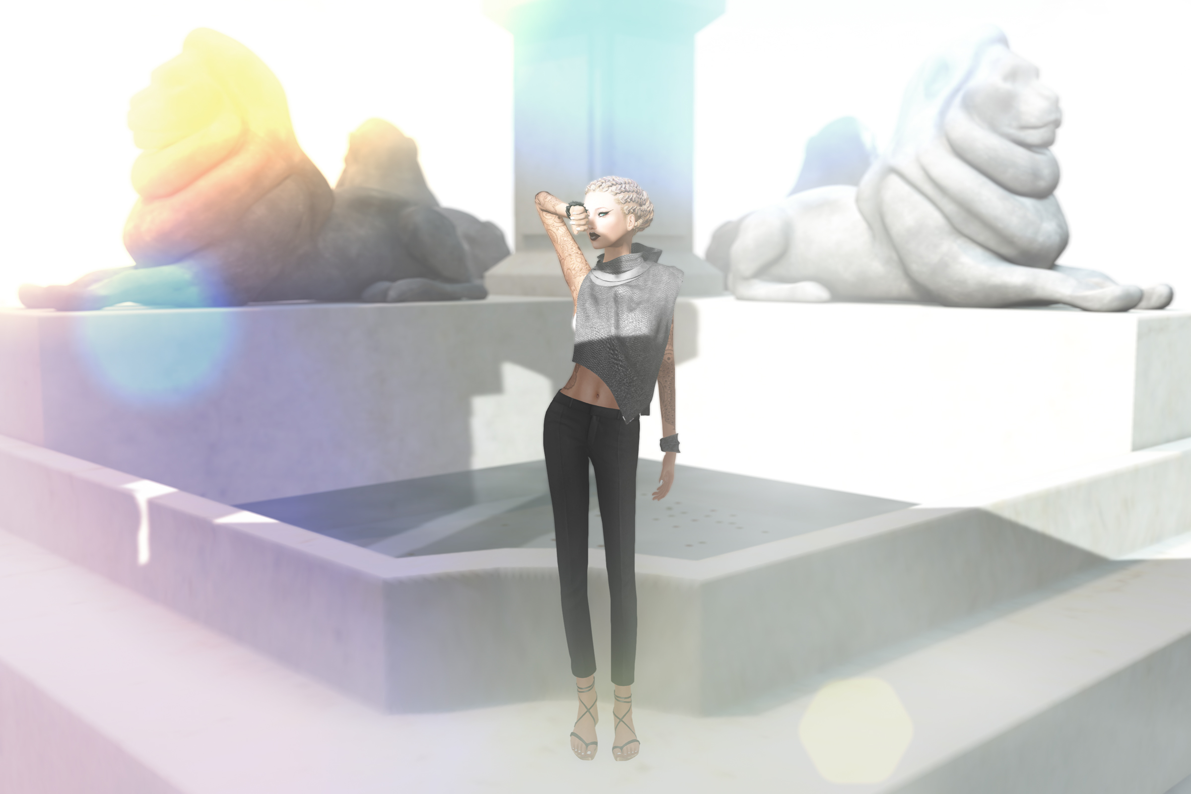Playing with windlights, lighting and processing.. I’m totally in love with all the braided/dreads styles at Discord Designs, and this new vest from Shi is just bliss! So this is what I would call an urban glamazone style!