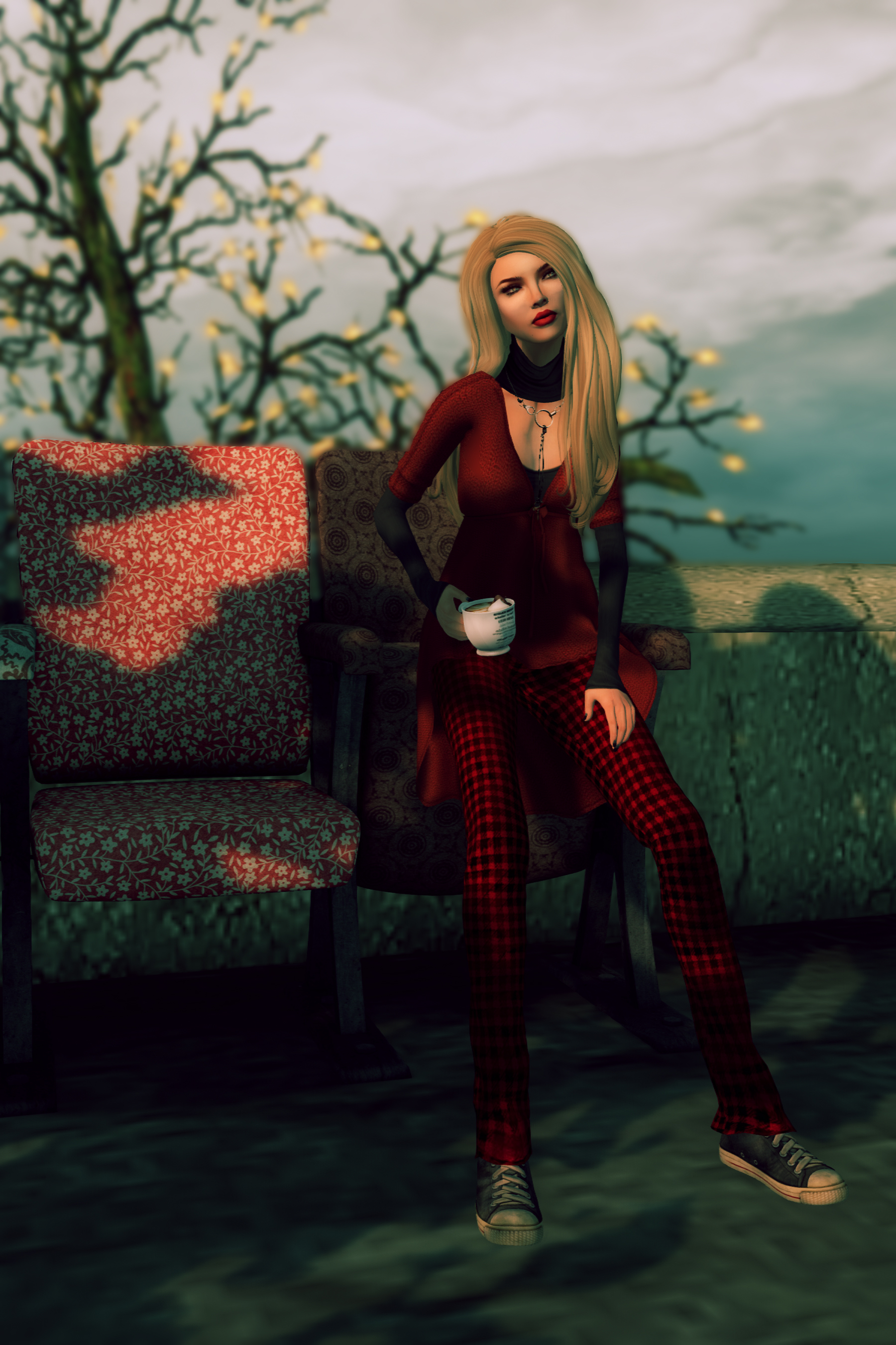 Yesterday I showed you a business-like, about-town look, today I’m all laaaaaaaaaaazy and relaxed! Love the pants by monso and the top by Coquet, both available at FaMESHed, and the collar and the shirt and sneakers make this an outfit I would wear in RL too without thinking twice about it!