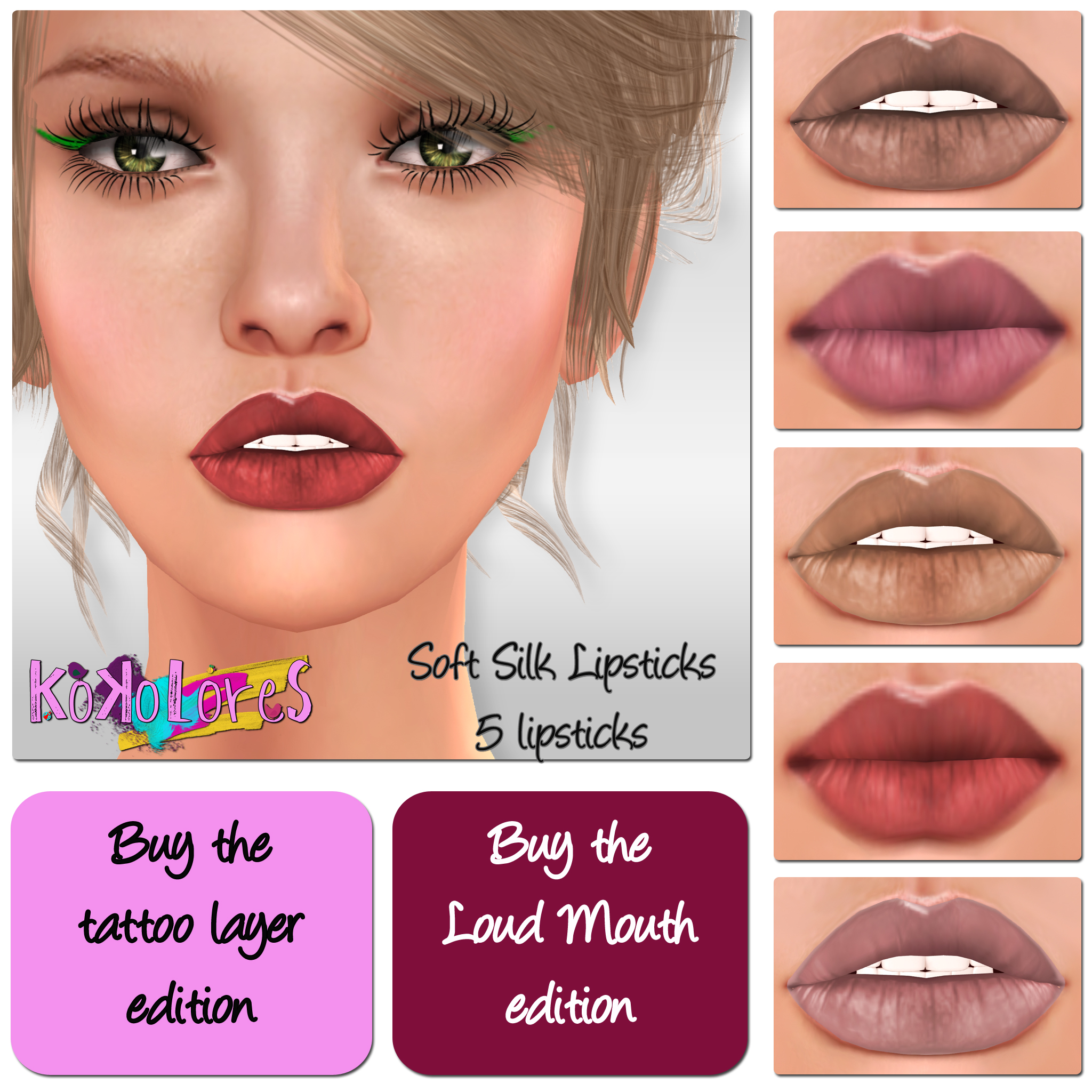 And it’s fi*Friday time again! KoKoLoReS offers two Slink nail applier sets and the Soft Silk Lipsticks – for the first time for Loud Mouth, too! Please be sure to get the version you need, because the tattoo layers are not included in the Loud Mouth package.