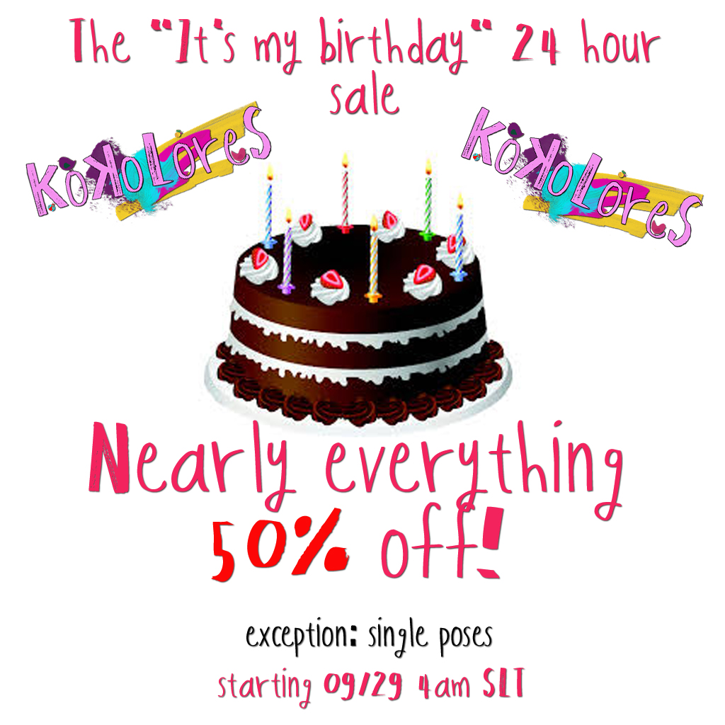 Therefore, for the next 24 hours, everything in the mainstore (except single poses in the pose vendors) is 50% off! Starting at 4am SLT.