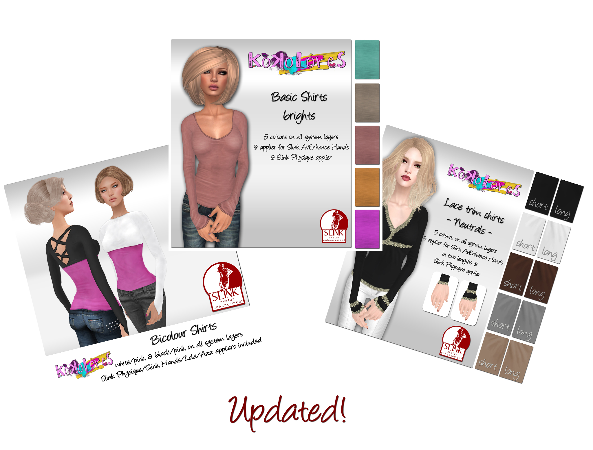 Finally the Basic, Lace Trim and Bicolour Shirts have been updated for Slink Physique!