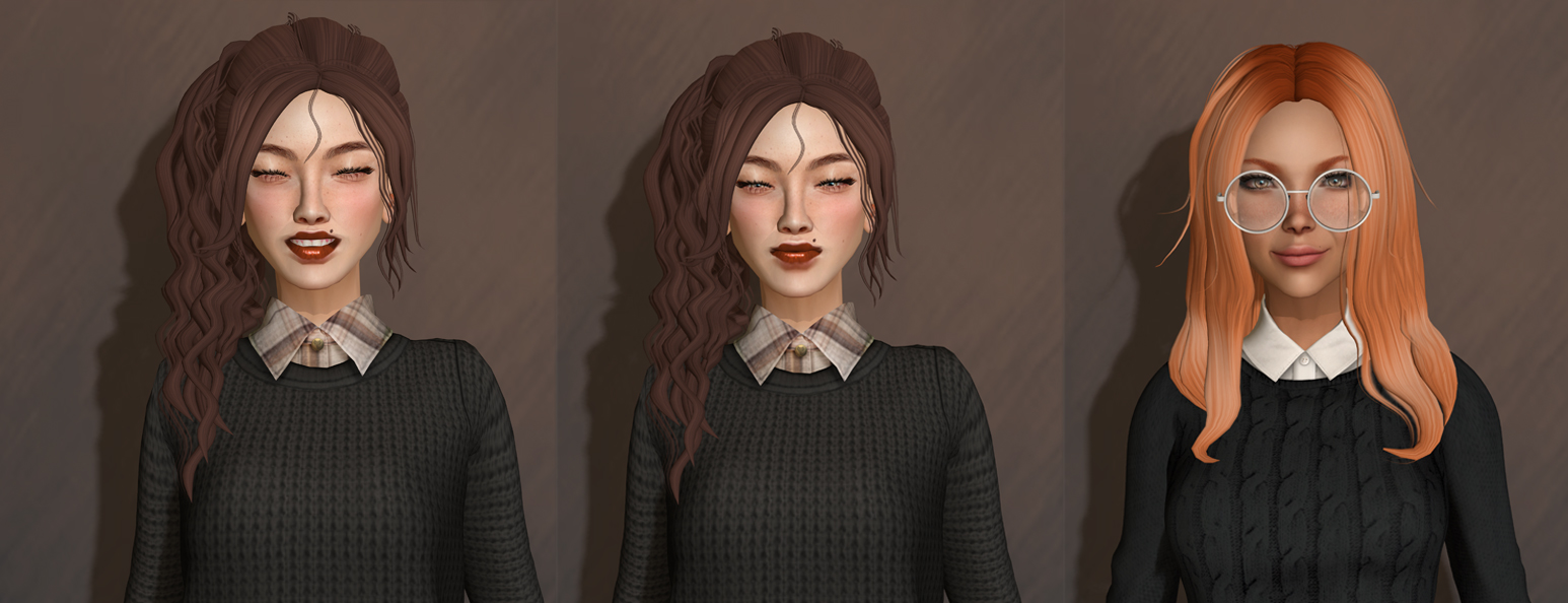So on the first photo, I downright “cheated” because I used the Slink Becky mesh head. The whole face changes for the smile anims (I used the smirk here) and with the right windlight, those lines around the mouth appear all by themselves! Not much editing to do there.