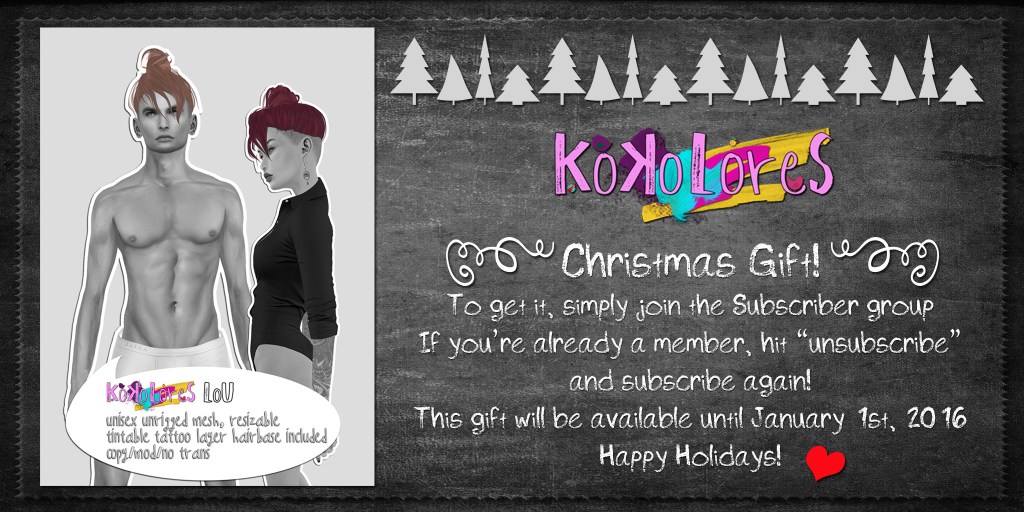 Lou comes in colour huds 01, 02 and 03 and with a tintable tattoo layer hairbase, and it’s a unisex style, I hope you like it!